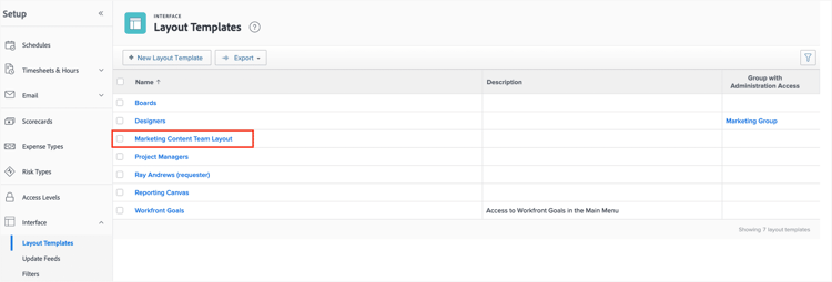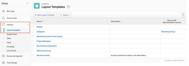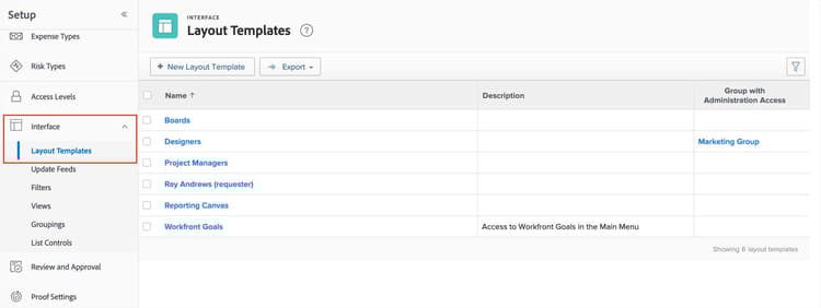 これにより、ユーザーが仕事をするために必要な Workfront の部分にアクセスできるようになるだけでなく、管理者が作成および維持するレイアウトテンプレートの数も減ります。