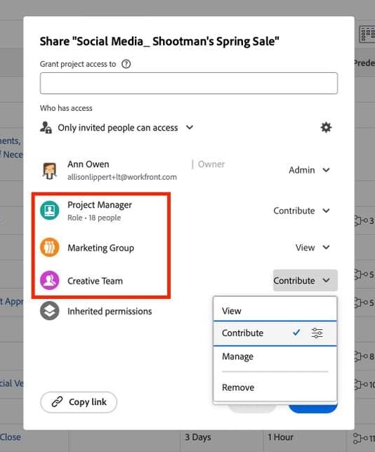 Adobe Workfrontでオブジェクトを共有する