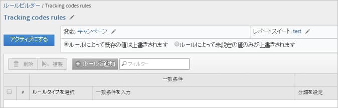 ルールセットがレポートスイートに関連付けられていることを確認します。