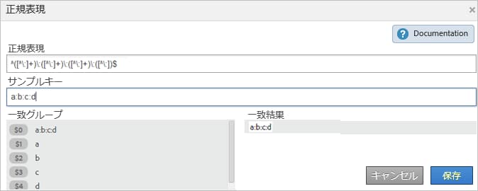 a:b の正規表現^([^\:]+)\:([^\:]+)$$1a:b の正規表現^([^\:]+)\:([^\:]+)$$2a:b:c の正規表現^([^\:]+)\:([^\:]+)\:([^\:]+)$$1a:b:c の正規表現^([^\:]+)\:([^\:]+)\:([^\:]+)$$2a:b:c の正規表現^([^\:]+)\:([^\:]+)\:([^\:]+)$$3a:b:c:d の正規表現^([^\:]+)\:([^\:]+)\:([^\:]+)\:([^\:])$$4正規表現 - 「含まない」の例 section_FCA88A612A4E4B099458E3EF7B60B59C