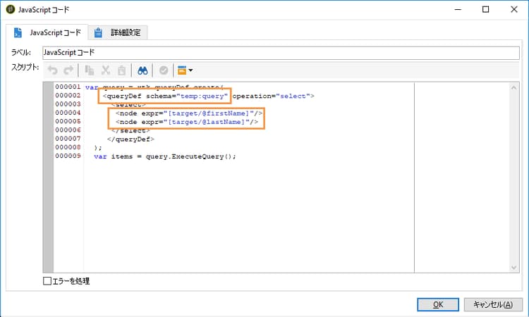 JavaScript コードがワークフロー情報に対応していることを確認します。