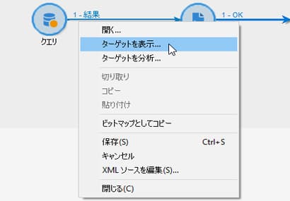 「クエリ」アクティビティからのアウトバウンドトランジションを右クリックし、「ターゲットを表示」を選択します。