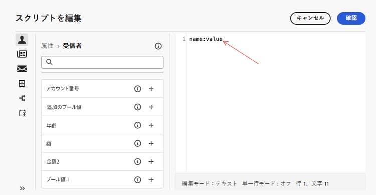 このウィンドウで入力するスクリプトは、name:value の形式で 1 行ごとに 1 つのヘッダーを参照する必要があります。