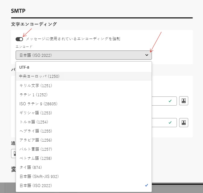 これを行うには、「メッセージに使用されているエンコーディングを強制」切替スイッチをアクティブ化し、特殊文字をサポートするリストから適切なエンコーディングを選択します。