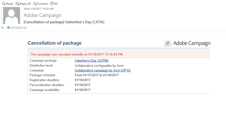 セントラルエンティティは、いつでもキャンペーンパッケージをキャンセルできます。