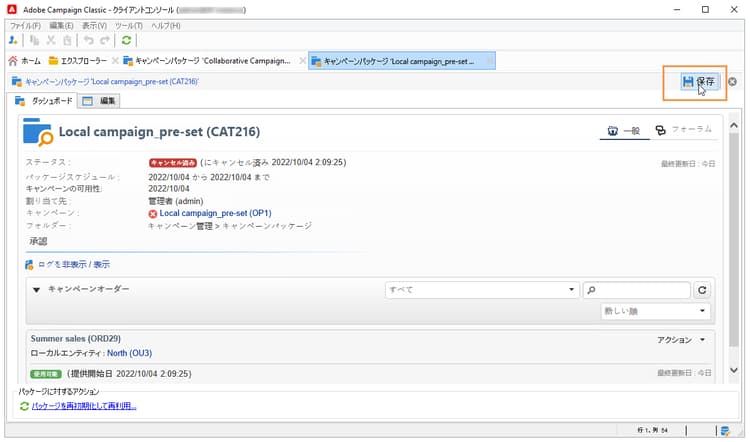 キャンペーンパッケージのラベルをクリックして編集を実行します。一部の設定の変更が可能です。