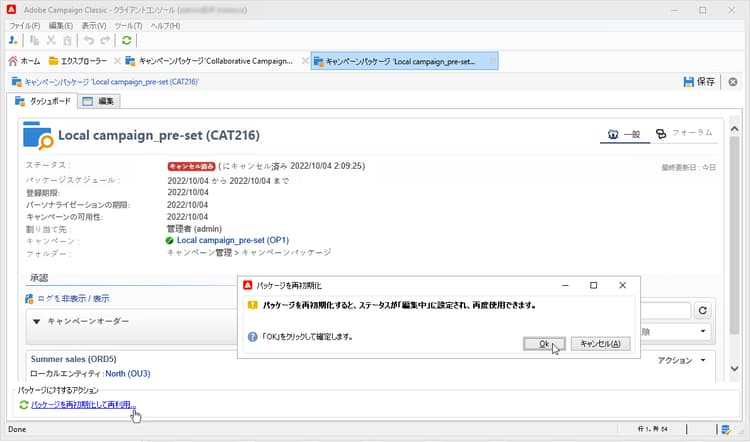 パブリッシュ済みのキャンペーンパッケージは、再初期化し、修正を加えて、再びローカルエンティティに提供することができます。