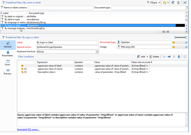 管理/設定/定義済みフィルター ノードには、デフォルトのフィルターがすべて含まれています。 一部は、リストや概要で使用されます。 組み込みの定義済みフィルター の詳細を説明します。
