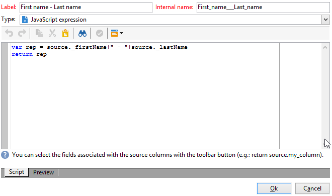 code language-none var rep = source._firstName+" - "+source._lastName return rep