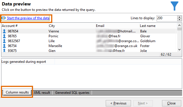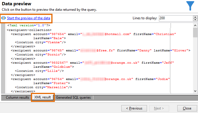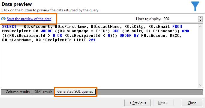 データのプレビュー ウィンドウで、「データのプレビューを開始」をクリックします。この機能により、クエリの結果が計算されます。