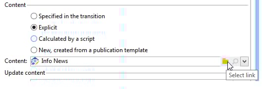 「コンテンツ」フィールドで、作成済みのコンテンツを選択できます。このフィールドは「明示」オプションを選択した場合にのみ表示されます。