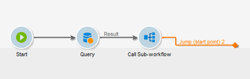 note note NOTE サブワークフローアクティビティが複数の ジャンプ アクティビティを伴うワークフローを参照している場合、サブワークフローは一番小さい数の「終了点」ジャンプと、一番大きい数の「開始点」ジャンプの間に実行されます。 サブワークフローが正常に動作するよう、一番小さい数の「終了点」ジャンプを 1 つのみ、一番大きい数の「開始点」ジャンプを 1 つのみにする必要があります。 -