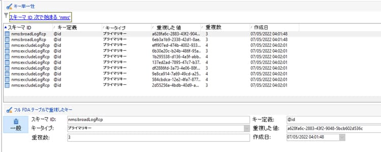 単一性アラート(ffdaUnicity)ワークフローが重複キーを検出した場合、スキーマ名、キーのタイプ、影響を受ける行数、日付を含む特定の 単一性監査 テーブルに追加されます。管理/監査/キー単一性 ノードの重複したキーにアクセスすることができます。