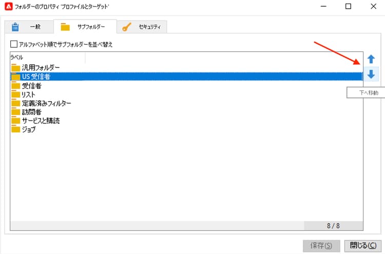 フォルダープロパティの「サブフォルダー」タブを参照し、そのサブフォルダーを整理します。