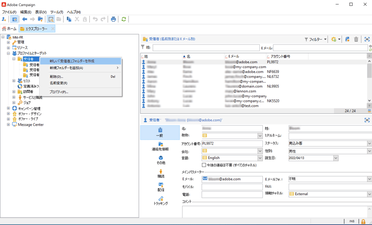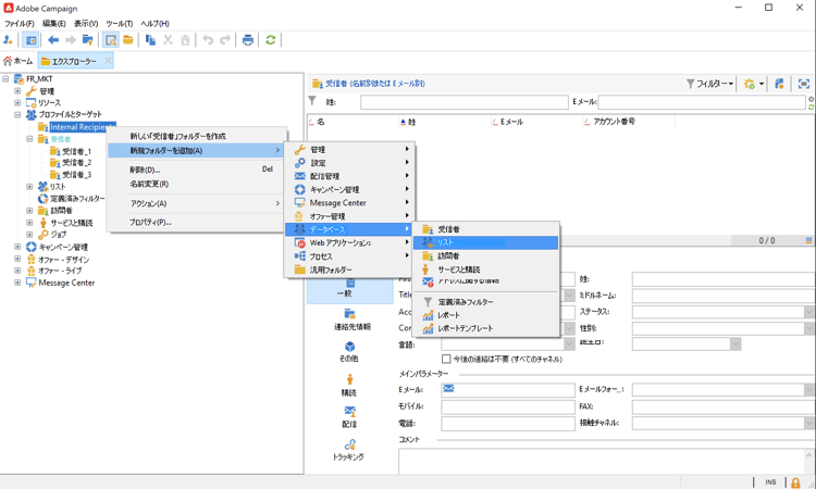 ビルトインフォルダーを使用 すると、プロジェクトに関与しているすべてのユーザーがアプリケーションを簡単に使用、保守、トラブルシューティングできるようになります。受信者、リスト、配信などのカスタムフォルダー構造を作成するのではなく、管理、プロファイルとターゲット、キャンペーン管理 などの標準フォルダーを使用してください。