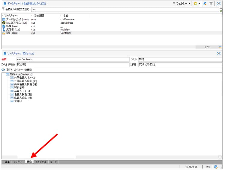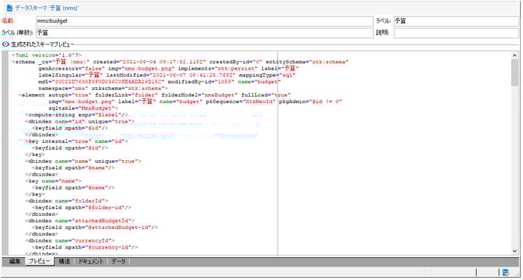 「プレビュー」タブでは、次のように拡張スキーマが自動的に生成されます。
