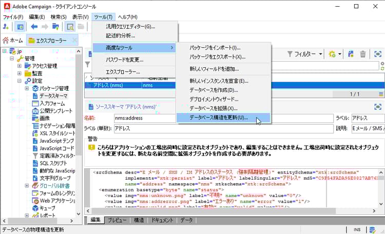 Campaign の中核となるデータスキーマ(受信者テーブル nms:recipient など)にフィールドなどの要素を追加する場合は、スキーマの拡張を行う必要があります。