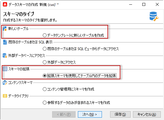 Campaign スキーマの作成または拡張 create-or-extend-schemas