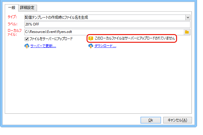 添付ファイルがローカルファイルの場合は、「配信テンプレートの作成時にファイル名を生成」オプションを選択します。ファイルはローカルで選択され、サーバーにアップロードされます。次の手順に従います。