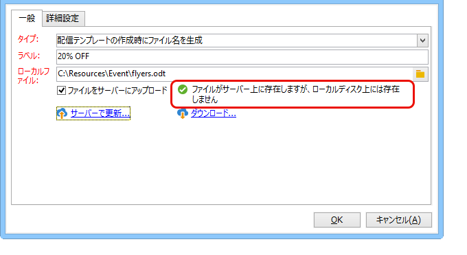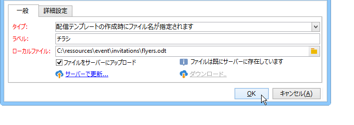 このファイルは、サーバー上で、このテンプレートから作成された別の配信に添付できるようになります。