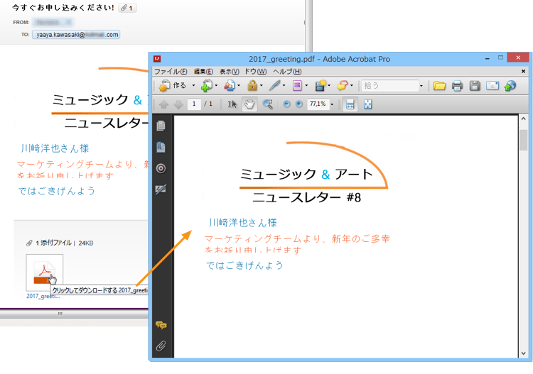 各受信者に、配信に添付されたパーソナライズ済み PDF が届きます。