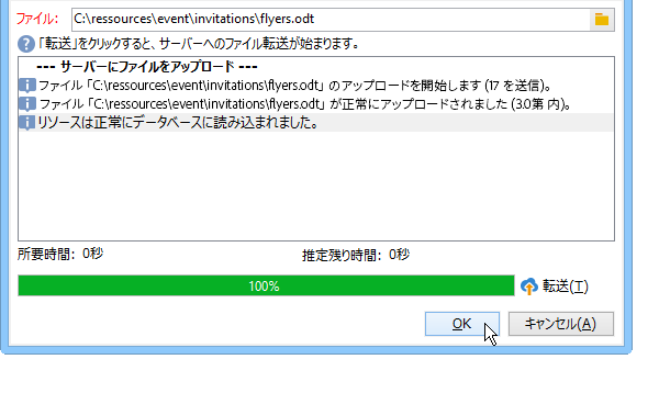 アップロードするファイルを、「ローカルファイル」フィールドで選択します。