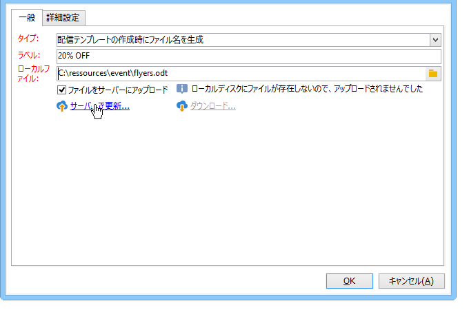 1 番目と 2 番目のオプションについては、「ファイルをサーバーにアップロード」を選択し、適切なオプションを設定します。「サーバーで更新…」リンクをクリックすると、アップロードが開始されます。