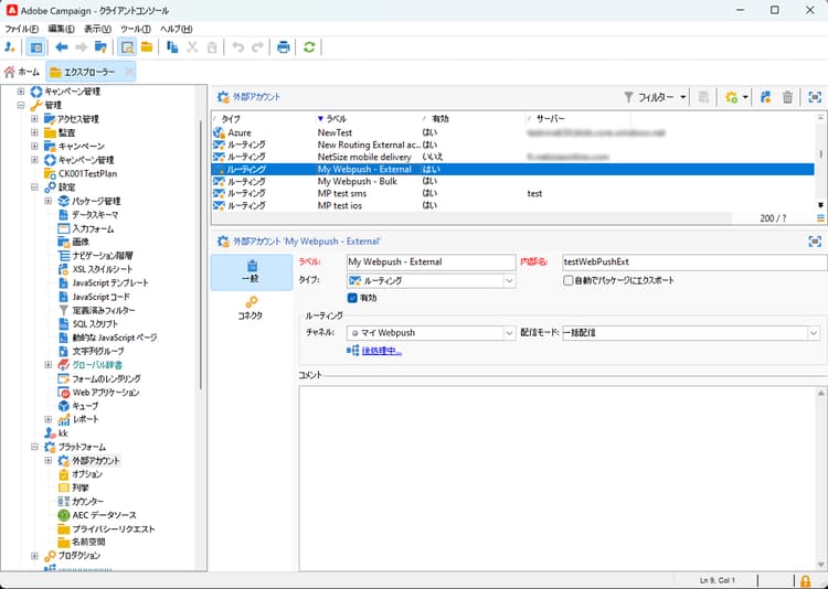 Campaign エクスプローラーから、管理/プラットフォーム/外部アカウントを選択します。