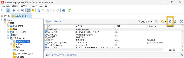 管理/プラットフォーム/外部アカウント で、新規 アイコンをクリックします