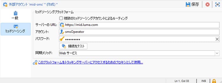 ミッドインフラストラクチャでは、以下のように、マーケティングサーバーに SMS 外部アカウントを作成する必要があります。