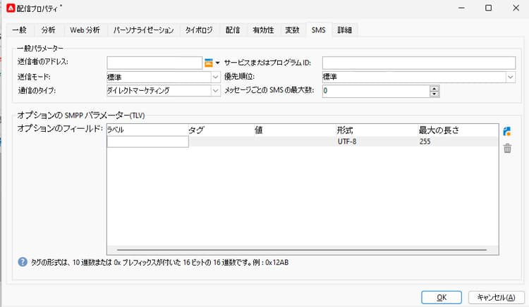「SMS」タブでは、テンプレートにオプションのパラメーターを追加できます。