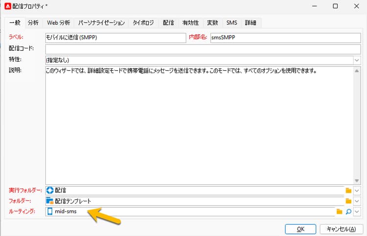 「一般」タブの ルーティング で、SMPP 外部アカウントを選択します。