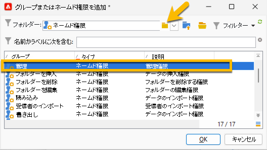 開いた新しいウィンドウで、フォルダー リストで「ネームド権限」を選択し、右側のリストで「管理」を選択します。 -