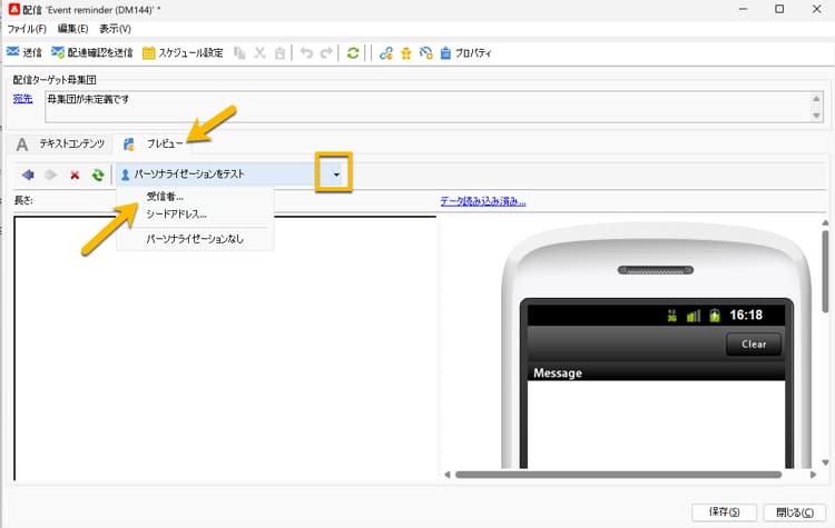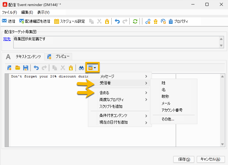 パーソナライゼーションフィールドまたは条件付きコンテンツが含まれる場合、メッセージのサイズは受信者によって異なります。メッセージの長さはパーソナライゼーションを適用した後の状態で評価する必要があります。