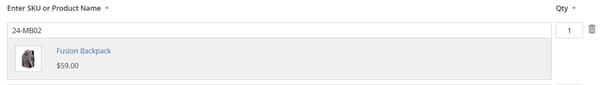 SKU が入力ラインに表示され、製品の詳細が下に表示されます。