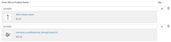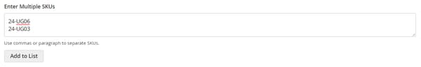 Enter Multiple SKUs のボックスで、お客様は次のいずれかの操作を行います。