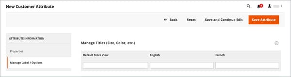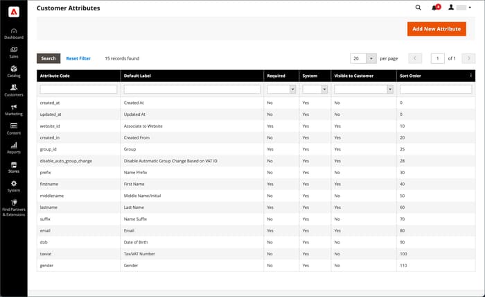 管理者 サイドバーで、Stores/Attributes/Customer に移動します。
