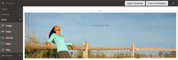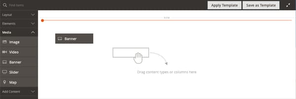 Page Builder パネルで Media を展開し、「バナー」プレースホルダーをステージにドラッグします。