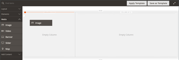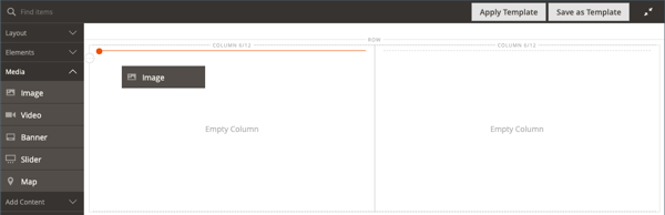 Page Builder パネルで Media を展開し、Image コンテンツタイプを最初の列にドラッグします。