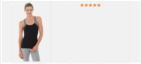 行の 2 番目の列には、顧客レビューのコンテンツ(5 つ星評価の画像と書式設定されたテキストメッセージを含む)が含まれている必要があります。