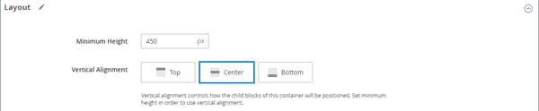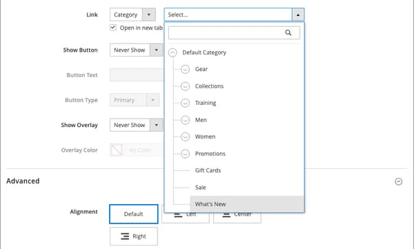 Page -- Full Widthに設定されています。 5 つの標準の レイアウト オプションに加えて、Page Builder は、ページ、カテゴリ、製品に全幅のレイアウトを追加します。 -