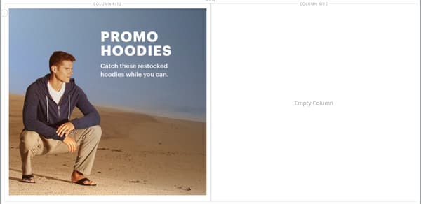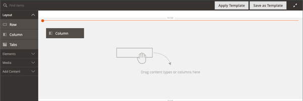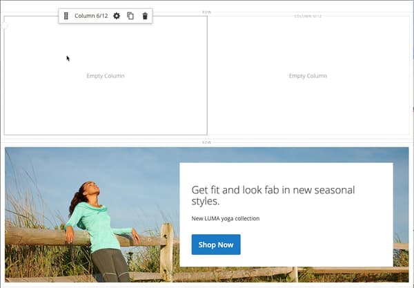 Layoutの下の Page Builder パネルで、Columnのプレースホルダーをステージの一番上の行にドラッグします。