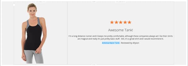 Awesome Tank!I'm a long distance runner and it keeps me pretty comfortable, although these companies always act like their shirts are magical and really it's just pretty basic stuff. Still it's a great shirt, and I would recommend it.Antonia Racer Tank – Reviewed by Allyson入力したテキストが中央揃えになります。