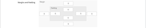 「Advanced」セクションまでスクロールし、すべての Margins and Padding 設定を「