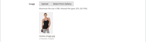 review-image.jpgファイルを選択します。アップロードされた画像は最初の列に表示され、行の背景色とシームレスにブレンドされます。