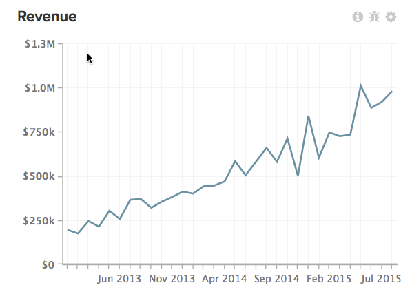 2014 年 11 月は不審な下落が見られます。 500,780.94 ドルの収入? そんな事言ってないよ。 ソースデータベースに、2014 年 11 月でより多くの売上高が表示されていることを確認し、このレポートで使用する 売上高 指標が正しく定義されていることを再確認しました。 MagentoBI データウェアハウスのデータが不完全であり、データエクスポートを使用して確認できるようです。