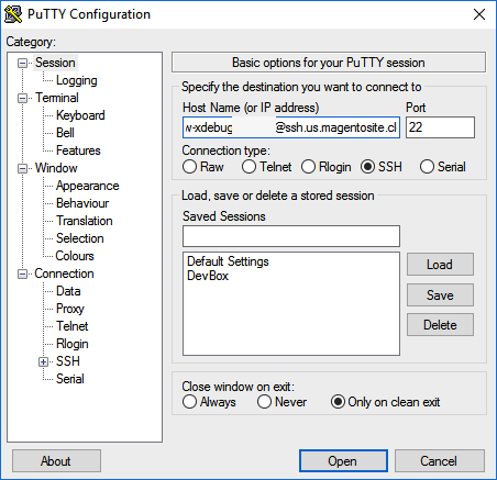 Xdebug を使用するには、次のように環境に SSH で接続します。