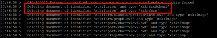 xtk:fusion スキーマを削除するには、postupgrade ツールを「– force」オプションを付けて実行する必要があります。