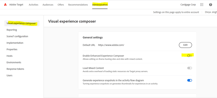 次の手順で、EEC (Enhanced Experience Composer)を無効に設定します