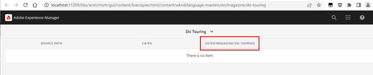 - ライブコピー: /content/wknd/us/en および/content/wknd/ca/en